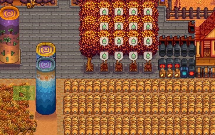 葡萄酒的收益非常可观,尤其是陈酿过的,卖出去能赚不少金币。酿酒桶越多效率越高,但也要合理规划空间,别把农场塞得太满影响走路。后期可以慢慢扩大规模,比如在矿洞或者沙漠摆满酒桶,这样每天都能收一波酒。葡萄酒只是酿酒流的一种,其他水果也能酿,但葡萄的稳定产出让它成为首选。