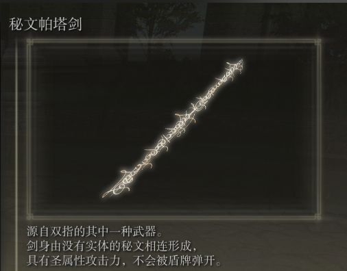 对于纯信仰路线的玩家,秘文帕塔剑是值得考虑的特殊选择。这把袖剑外形的武器完全依赖信仰属性加成,战技穿防能无视敌人防御直接造成伤害。获取位置位于王城外围特定区域,需要从高处平台跳跃至隐藏房间。虽然基础伤害较低,但极高的信仰补正使其在后期信仰值堆高后表现亮眼,尤其适合专注祷告输出的build。