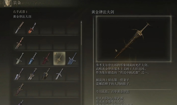 黄金律法大剑作为传说级武器,完美契合力信双修的密使流派。专用战技黄金律法敬礼能形成范围爆炸并释放黄金波,兼具AOE清场与单体爆发能力。这把武器需要较高力量与信仰值支持,建议在角色属性成型后使用。其独特的光效与信仰加成都体现了黄金律法体系的特色,是通关后期的可靠选择。