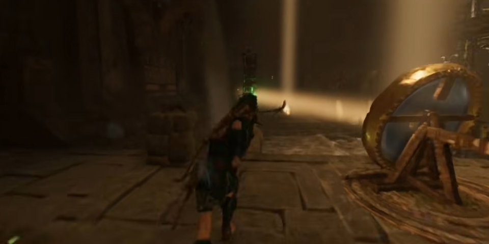 这个古墓位于游戏的中后期,需要先拿到攀爬绳索才能进入,所以别急着去探索哦。进入古墓后会发现里面有两个杆机关和一个水闸,咱们得先打开入口正面的水闸,然后立刻从左手边爬上去等着。过一会儿浮灯会顺着水流碰到第一个杆机关,这时候机关会转到合适的位置,咱们就能抓住机会跳到对岸啦。