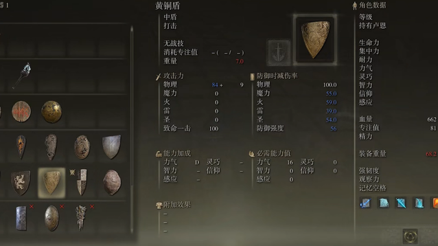 盾刺流存在移动速度较慢、输出节奏偏慢的缺点,面对高机动性或多阶段变化的敌人时效率会明显下降。建议根据敌人类型调整武器搭配,对抗不吃异常的敌人时可改用寒冷质变武器。属性加点优先满足盾牌力量需求,耐力影响装备负重和精力管理,感应属性可提升异常状态积累速度。祷告方面推荐携带黄金树庇佑和火焰重罪,前者提供全面抗性提升,后者可配合特定装备触发额外效果。