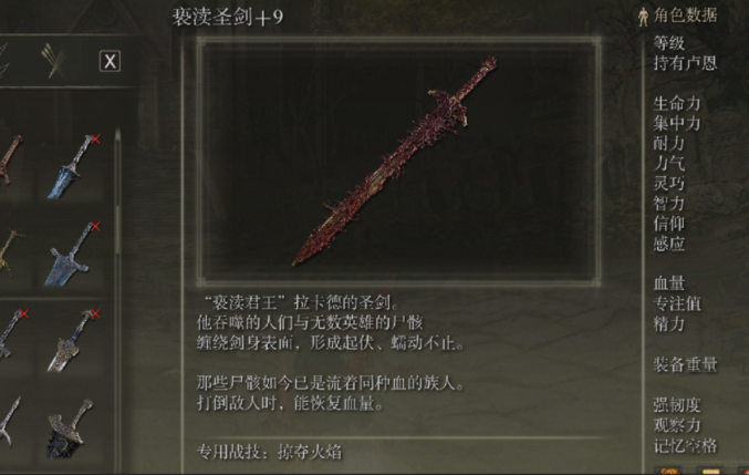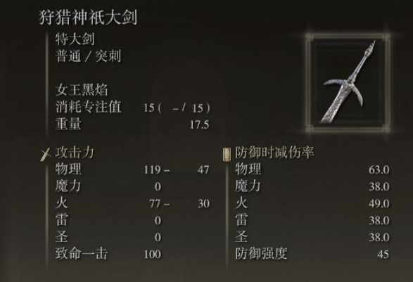 亵渎圣剑是信仰战士流派当之无愧的最强主武器,其战技掠夺火焰兼具高额火属性伤害与独特的回血机制,面对绝大多数Boss都能造成显著伤害。该武器力气与灵巧补正为C级,信仰补正达到B级,建议优先将信仰属性提升至60点,力量22点,灵巧15点以发挥最大效能。获取方式为完成格密尔火山官邸支线任务,击败亵渎君王拉卡德后通过追忆兑换。