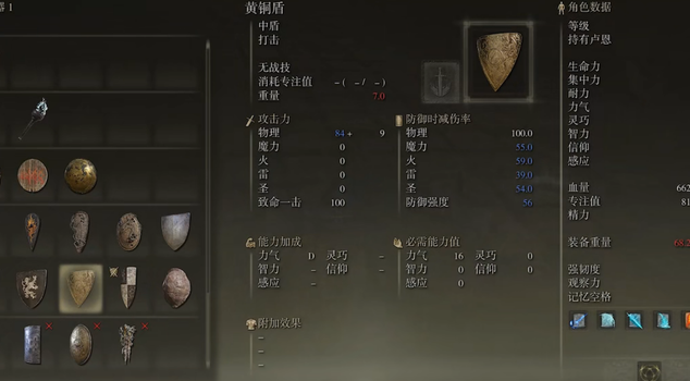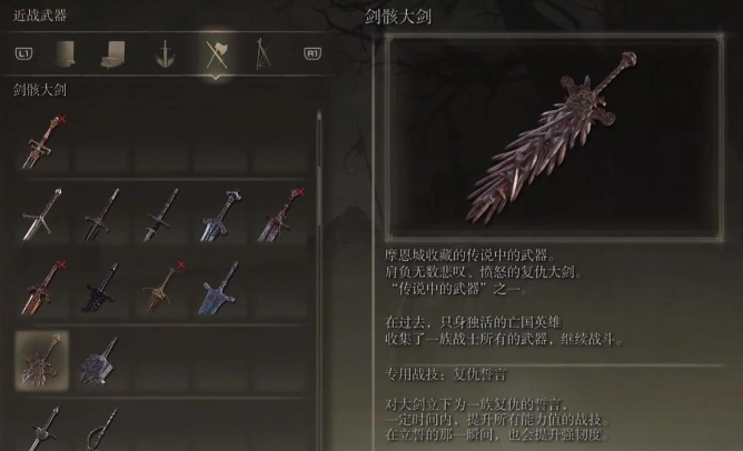 如果喜欢近战,推荐去摩恩城转转,这里能捡到一把叫剑骸大剑的武器,战技可以短时间内提升所有能力值,相当于白嫖几十级属性,特别适合前期推图。这把剑需要击败狮子混种BOSS才能拿到,建议先提升一下角色等级再去挑战。摩恩城还能捡到黄铜盾,物理防御100%,格挡性能优秀,是初期最实用的盾牌之一。