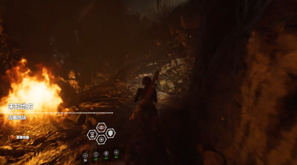 首先通过小洞进入古墓小道,击败沿途遇到的狼群后,直接从石台爬上右前方洞口,注意别走树干会被风吹落。进入古墓区域后,拉动入口右侧石像前的转杆打开第一个风口,跳上左侧摇摆的石摆锤,等风吹到最高点时快速跳到对面平台。